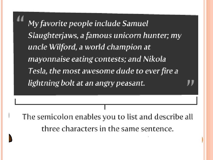 COLONS ARE USED WHEN…. Introducing a list or series During 13 years in the White House, Franklin D. Roosevelt had three vice presidents: Garner, Wallace, and Truman.