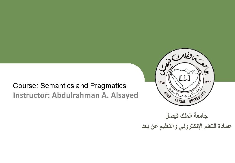 Constatives A constative utterance is an utterance with which the speaker describes something which may be true or false. E. g. “I’m trying to get this box open with a screwdriver. ” This utterance expresses and describes something which we may judge as being true or false. However, utterances can do more than simply describe something. ﻋﻤﺎﺩﺓ ﺍﻟﺘﻌﻠﻢ ﺍﻹﻟﻜﺘﺮﻭﻧﻲ ﻭﺍﻟﺘﻌﻠﻴﻢ ﻋﻦ ﺑﻌﺪ Deanship of E-Learning and Distance Education ][ 9 [ ] ﺟﺎﻣﻌﺔ ﺍﻟﻤﻠﻚ ﻓﻴﺼﻞ King Faisal University