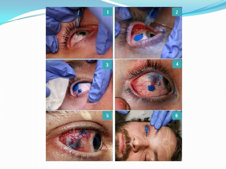 Infección mas común �La blefaritis es una inflamación de los bordes de los párpados. Puede dar lugar a infección de los folículos de las pestañas. Si se infecta la membrana que cubre el ojo, el paciente presenta un “ojo rojo” (conjuntivitis). �Por esta causa, siempre deben limpiarse los ojos por separado pasando un poco de algodón desde el ángulo interno hacia el externo