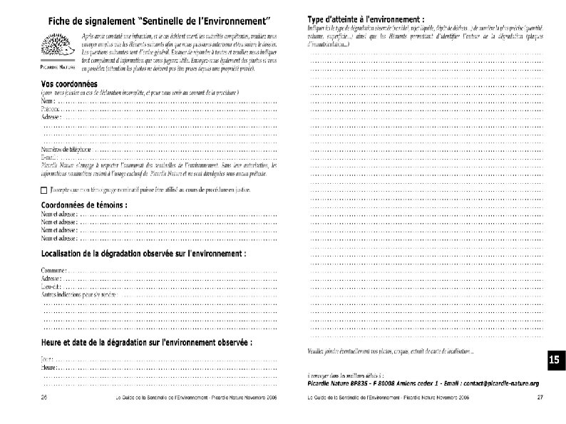 Retrouvez la rubrique Sentinelle de l'environnement sur www. picardie-nature. org Guide réalisé avec le soutien de nos partenaires :
