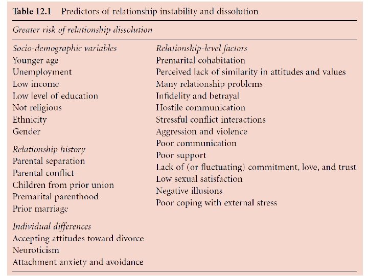 Fatores recentes influenciando as separações Nicky Hart (1976): três fatores aumentando a taxa de divórcios: 1. Oportunidades de escapar dos relacionamentos. 2. Oportunidades para um maior conflito e estresse. 3. Alteração de valores sobre casamento.