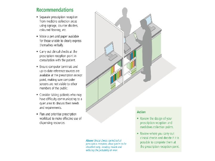 Final Checking of Medicines When Dispensing • • Do not hand over medicines in a sealed box, envelope (X) without checking them with the patient or her/his rep. Even when a patient has been on the same repeat prescription for many years, it is still worthwhile checking that the medicines being dispensed are what is expected and that the patient is not experiencing any problems using their medicines. proactively ensuring that the patient can open and use their medicine as intended; identification and management of side effects of medicines.