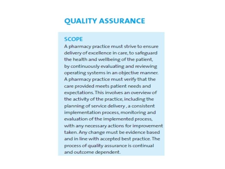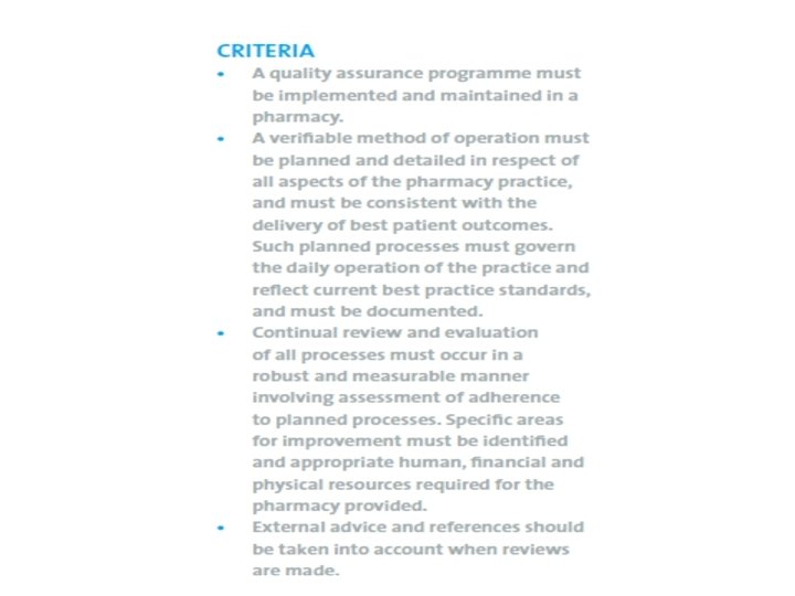 Pharmac ist Dispensing Compounding Calculations Equipments in working order Materials are from Recognized Pharmaceutic al manufacturer Maintaining good records SOP STAFF Labelling regulations. . are part of QMS PATIENT 9/15/2020 19