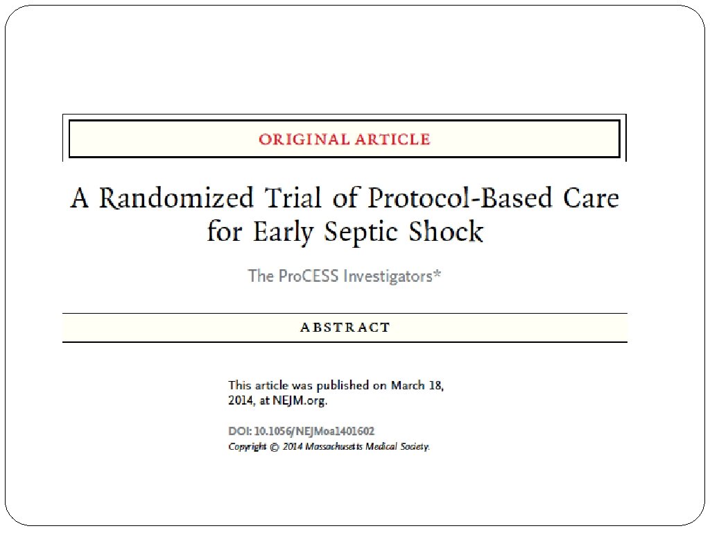 How did we do it? � Randomized trial of usual care v. early goal directed therapy � 263 patients � 16% Absolute risk reduction in mortality