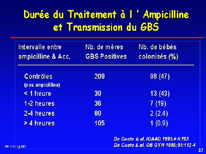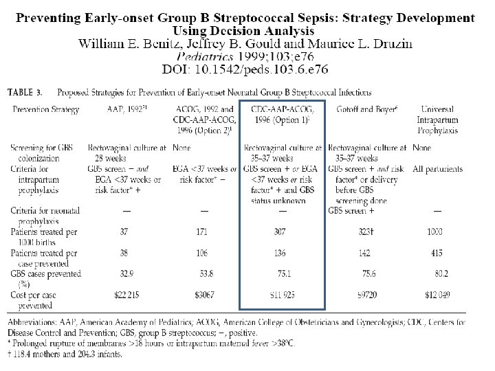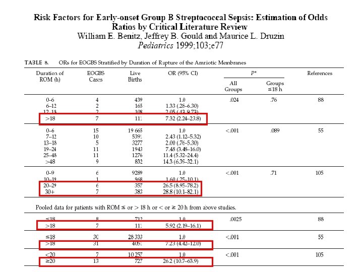 Duration of Intrapartum Prophylaxis for Neonatal Group B Streptococcal Disease: A Systematic Review. Obstetrics & Gynecology. 108(5): 1254 -1265, November 2006. Illuzzi, Jessica L. MD; Bracken, Michael B. Ph. D Department of Obstetrics, Gynecology & Reproductive Sciences, and the Center for Perinatal, Pediatric, and Environmental Epidemiology, Department of Epidemiology and Public Health, Yale University School of Medicine, New Haven, Connecticut. … …