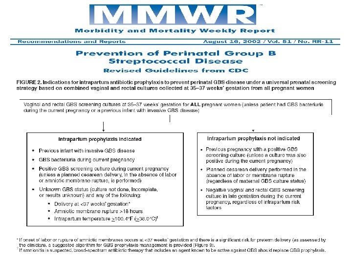 Estreptococo agalactie: SGB • Descrito en 1887. – – • • Diplococo Gram positivo facultativo y encapsulado, perteneciente al grupo B de Lancefield. Diez serotipos según polisacárido capsular: Ia, Ib, III, IV, V, VII, VIII, IX (en negrita los que suponen >95% de los casos) Distinta frecuencia según área geográfica: Andalucía: Ia y III. El serotipo III es el más frecuentemente asociado a sepsis tardía y meningitis. Descubierto en cultivos vaginales en 1935 (Lancefield RC, Hare R. J Exp Med 1935; 61: 335 -49). Patógeno humano (sepsis puerperal) en 1938 (Fry RM. Lancet 1938; 1: 199 -201). – – • Coloniza al 10 -40% de las gestantes (Regan J. Obstet Gynecol 1991; 77: 604 -10) y hasta el 60% de mujeres jóvenes sexualmente activas en algún momento en seguimientos a 12 meses. (Meyn. Am J – • Reservorio genitourinario o gastrointestinal tratamiento intraparto, NO gestacional. Colonización intermitente (Yancey, MK. Obstet Gynecol 1996; 88: 811 -15). Epidemiol 2002; 155: 949 -57) En España coloniza al 11 -18. 2% de las embarazadas (Cueto, M. Obstet Gynecol 1998; 91: 112 -14). Transmisión al RN al inicio del parto o tras amniorrexis. (Schrag, S. MMWR 2002; 51(RR 11): 1 -22). – Sin medidas profilácticas: • Tasa de colonización del RN del 50% (Cueto, M. Obstet Gynecol 1998; 91: 112 -14). • Tasa de sepsis del 1 -3% (Schrag, S. MMWR 2002; 51(RR 11): 1 -22). – 1 -4 casos/1000 RN vivos. Diez veces mayor en VLBW (Stoll. Pediatr Infect Dis J. 2005; 24: 635 -39).