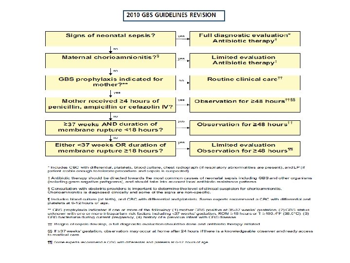 CLASIFICACIÓN DE FACTORES DE RIESGO Boyer et cols: J Infect Dis. 1983; 148: 795 -801 a) Mayores: • Prematuridad < 35 semanas. • Amniorrexis prolongada > 24 horas (riesgo x 10). • Fiebre materna intraparto > 38º C (riesgo x 10). (la fiebre 2ª a epidural generalmente se resuelve en 2 -4 horas y no es > 38. 5ºC) • Sospecha de corioamnionitis. • Madre portadora SGB sin profilaxis antibiótica completa (<4 h). • Hermano afecto de sepsis por EGB (riesgo x 25). b) Menores: • • • Leucocitosis materna > 15. 000/mm 3. PCR elevada en la madre. BR > 18 horas. Febrícula materna intraparto > 37. 5º C (riesgo x 4). Líquido amniótico teñido o maloliente.