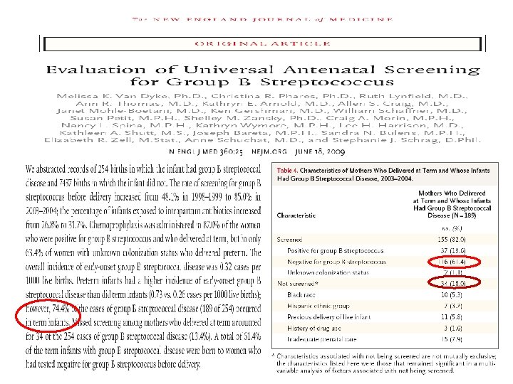 A population-based comparison of strategies to prevent early-onset group B streptococcal disease in neonates Stephanie J Schrag, Elizabeth R Zell, Ruth Lynfield, Aaron Roome, et al. The New England Journal of Medicine. Boston: Jul 25, 2002. Tomo 347, Nº 4; pg. 233, 7