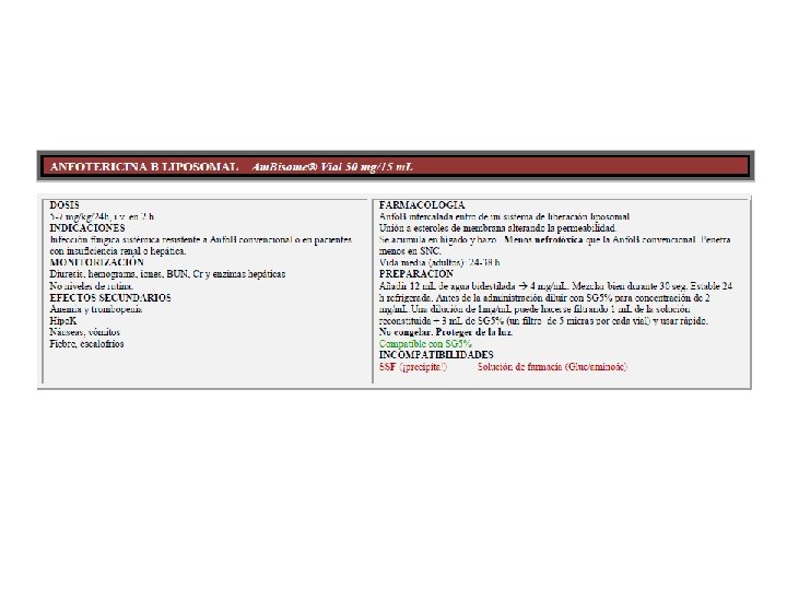 TRATAMIENTO • • Gentamicina Empírico (según epidemiología del Servicio): Ampicilina + o Cefotaxima Si catéter invasivo: Vancomicina o Teicoplanina + Cefotaxima o Amikacina + retirada del catéter a menos que se trate de Enterococcus spp o Staph coagulasa negativo intentar esterilización (retirar si 2 hemocultivos positivos). Daniel K. Benjamin Jr, et al. Bacteremia, Central Catheters, and Neonates: When to Pull the Line. Pediatrics 2001; 107: 1272 -1276. • Si sospecha de NEC: añadir Clindamicina a la pauta inicial. • Si sospecha de Pseudomonas: Ceftazidima o Ticarcilina + Amikacina. • Si artritis séptica ir a 21 días de tratamiento y a 28 para las osteomielitis (finalizar VO) • Si sospecha de candidiasis sistémica: • Anfotericina B liposomal 4 -6 semanas ó 2 semanas tras demostrar esterilización. • Retirar catéter. No colocar otro hasta que no se completen mínimo 4 días de Tto. Invasive Candida infections in the neonate. Pg 147 -162. P. Brian Smith, et al. Neonatal Candidiasis Among Extremely Low Birth Weight Infants: Risk Factors, Mortality Rates, and Neurodevelopmental Outcomes at 18 to 22 Months. Daniel K. Benjamin, Jr, et al. National Institute of Child Health and Human Development Neonatal Research Network. Pediatrics 2006; 117: 84 -92.