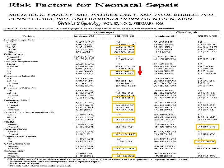 FACTORES de RIESGO de SEPSIS: 1+1 2 Pediatr Clin N Am 51 (2004); 939 -59 CONDICIONES Bolsa rota > 18 horas INCIDENCIA DE SEPSIS 1% SGB positivo (sin profilaxis) 0. 5 -1% SGB positivo (con profilaxis) 0. 2 -0. 4% SGB positivo y Bolsa rota > 18 horas o fiebre o prematuridad 4 -7% Corioamnionitis 3 -8% SGB positivo y Corioamnionitis 6 -20% Bolsa rota > 18 horas y Prematuridad 4 -6% Bolsa rota > 18 horas y Apgar bajo 3 -4%