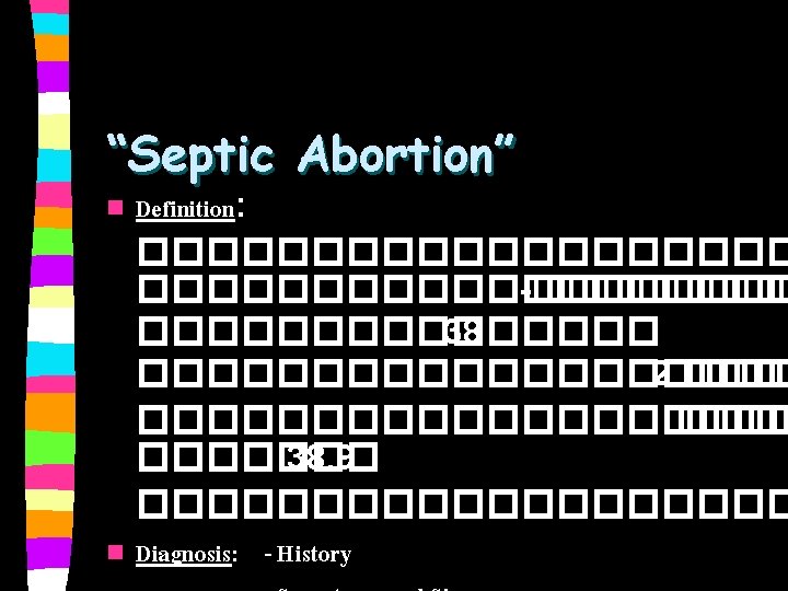 Septic Abortion: Introduction n n n History Physical Examination Problem list Differential diagnosis Investigation Management “Septic Abortion”