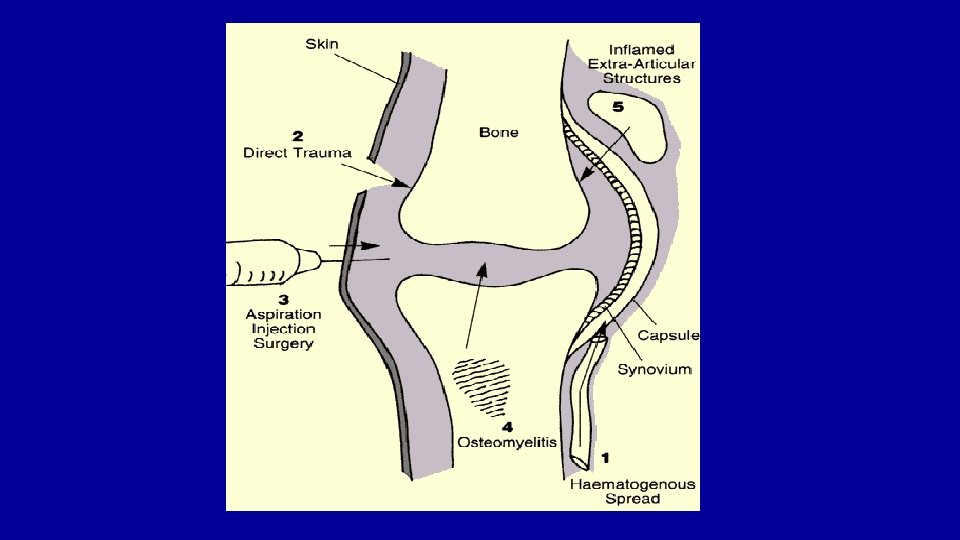 Summary - Investigation - ESR, CRP - Aspiration - Perform as soon as possible, Confirm diagnosis - Leukocyte > 50, 000, PMN > 75 % - Treatment • • Adequate surgical drainage Empiric intravenous antimicrobial therapy: If clinical improve can be conversion to oral ABO Joint must be rested