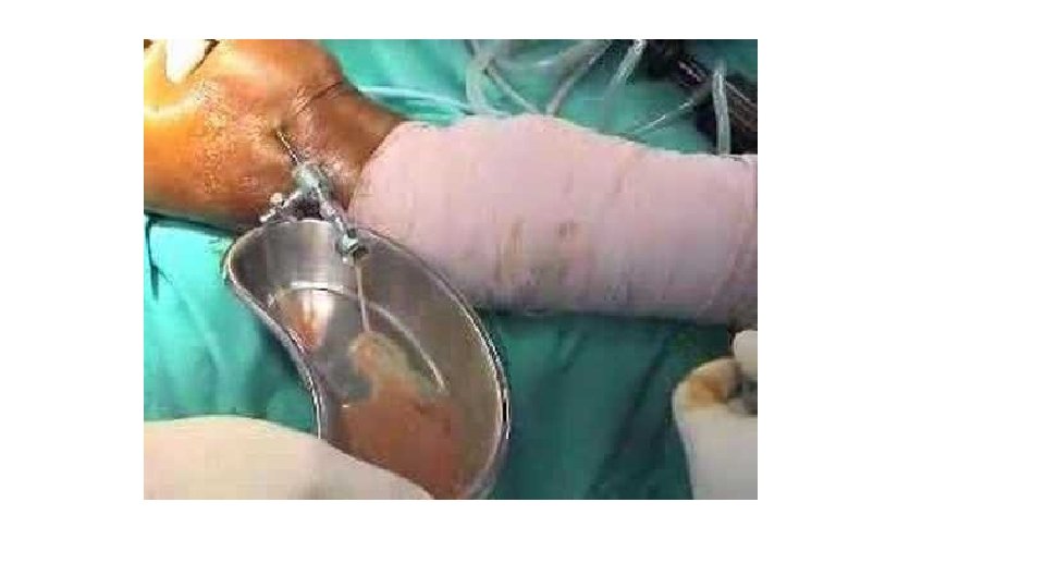 Drainage pus is drained and the joint washed out -------open operation (the best to done ) -------repeated needle aspiration and irrigation(superficial joint ) -------arthroscopy (knee joint) Once the patient’s general condition is good and the joint is no longer inflamed, gentle and gradually increasing movements are encouraged. But if articular cartilage has been destroyed, the aim is to keep the joint immobile in the optimum position while ankylosis is awaited.