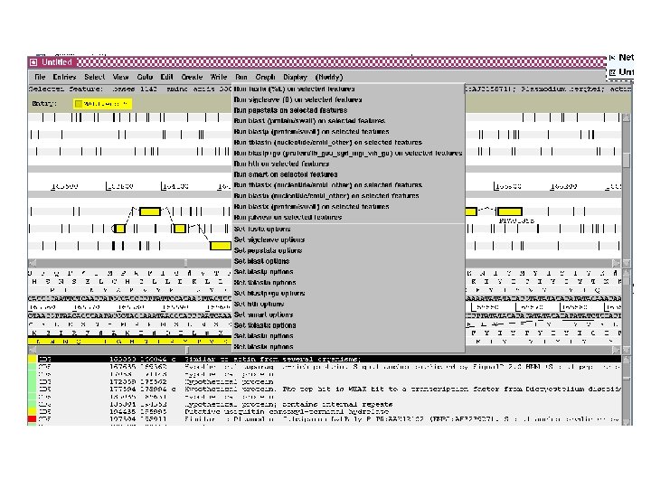 Outline of Artemis demonstration • • Artemis window features Open a genome sequence Changing the view Getting around – Goto Menu – Navigator – Feature Selector • Basic analysis – Edit a feature – Fasta search – Show feature plots