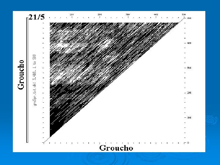 Dot. Plot Ø Dotplot- matrix, with one sequence across top, other down side. Put a dot, or 1, where ever there is identity. . . G A T C T . . .