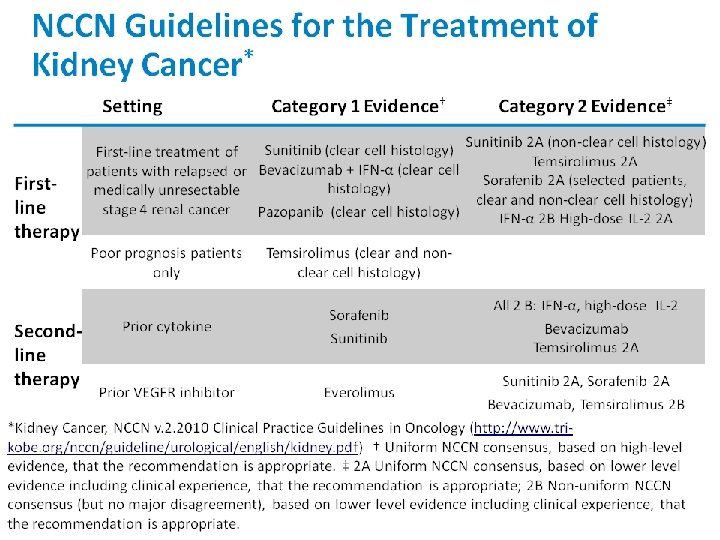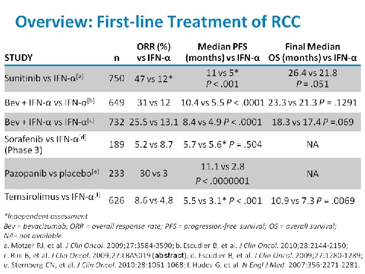 Targeted agents in sequence Study* NCT 00903175 (RECORD-3) Sequence After 1 st line failure NCT 00732914 (SWITCH) Study type Treatment 1 Treatment 2 Randomized phase III Sunitinib Everolimus Randomized phase III Sunitinib NCT 00678392 (AXIS) Randomized phase III NCT 00474786 (TORISEL 404) Randomized phase III NCT 00678288 Randomized phase II everolimus sorafenib vs vs n 390 sunitinib Sorafenib 540 sunitinib TT or CK Sorafenib vs axitinib 650 sunitinib Sorafenib vs temsirolimus 480 sunitinib Sorafenib vs 24 Sorafenib+INF NCT 00782275 Phase II TKI(one), CK or chemo Bevacizumab +temsirolimus 46 NCT 00651482 Phase II TKI (one) CK Bevacizumab + everolimus 30 *available at http: //clinicaltrials. gov