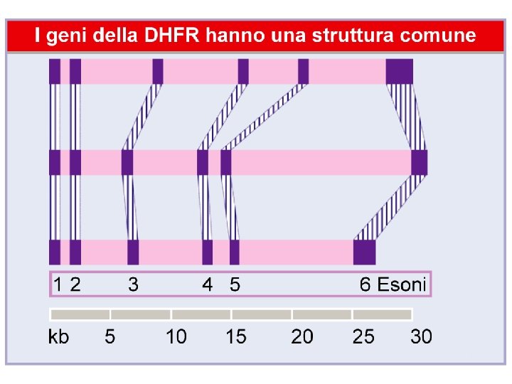 Origine degli introni • Antica: gli introni sono stati eliminati in alcuni genomi • Moderna: gli introni si sono inseriti in alcuni genomi