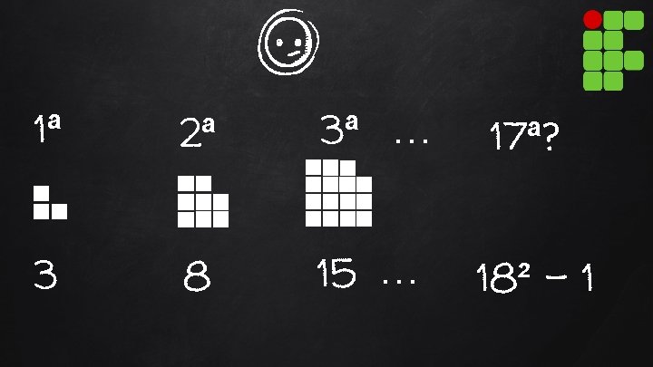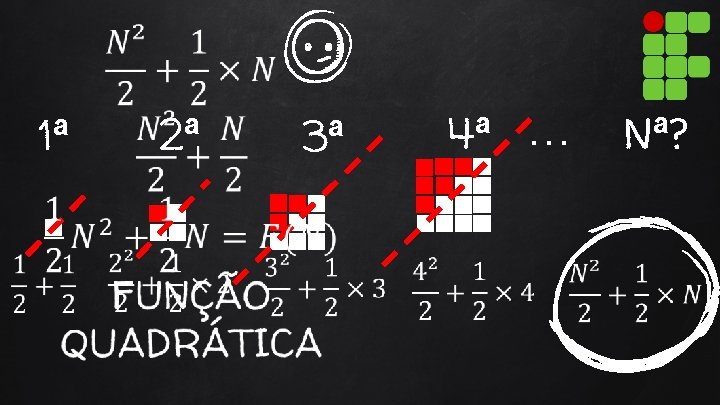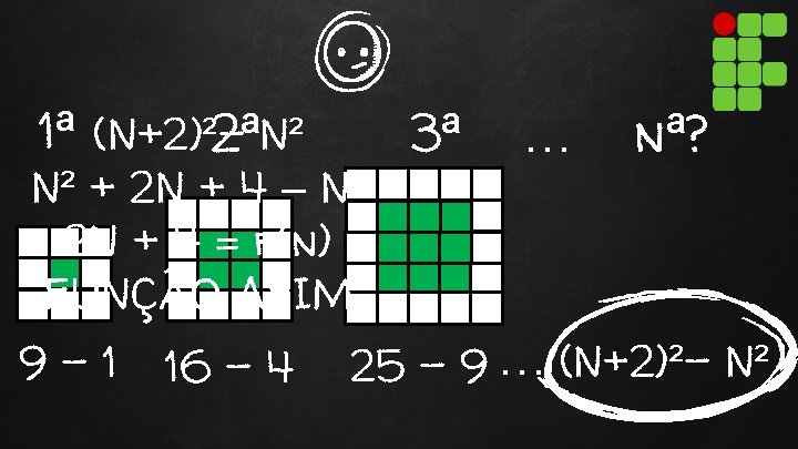(N+1)²- 1 1ª 3ª 2ª N² + 2 N + 1 – 1 N² + 2 N = f(n) FUNÇÃO 15 3 QUADRÁTICA 8 … Nª? … (N+1)² - 1