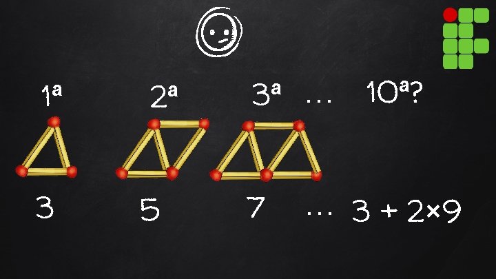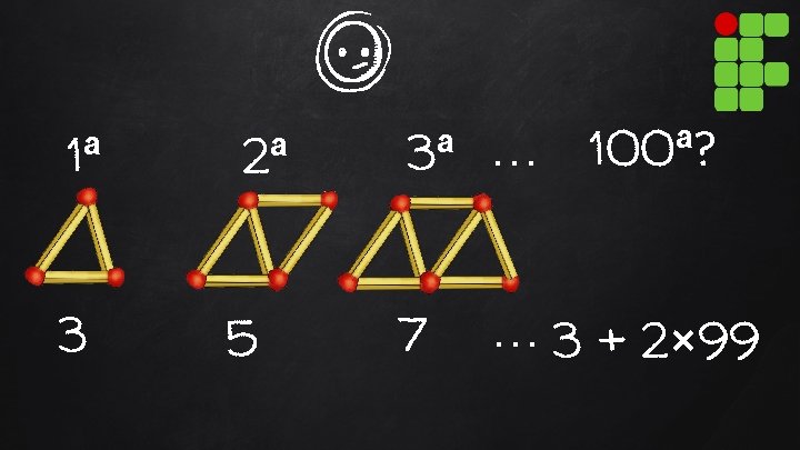 3 + 2(N – 1) 1ª 2ª 3 + 2 n – 2 2 n + 1 = f(n) FUNÇÃO AFIM 3 5 3ª … 7 Nª? … 3 + 2(N-1)