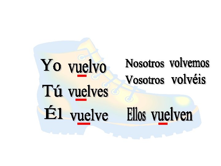 ser Yo Nosotros Nosotras T Vosotros Vosotras El Slides: 33 Download presentation ser Yo Nosotros Nosotras Tú Vosotros Vosotras El Ella Usted Ellos Ellas Ustedes ir Yo Nosotros Nosotras Tú Vosotros Vosotras Él Ella Usted Ellos Ellas Ustedes jugar Yo Nosotros Nosotras Tú Vosotros Vosotras El Ella Usted Ellos Ellas Ustedes tener Yo Nosotros Nosotras Tú Vosotros Vosotras El Ella Usted Ellos Ellas Ustedes venir Yo Nosotros Nosotras Tú Vosotros Vosotras El Ella Usted Ellos Ellas Ustedes ver Yo Nosotros Nosotras Tú Vosotros Vosotras Él Ella Usted Ellos Ellas Ustedes saber Yo Nosotros Nosotras Tú Vosotros Vosotras Él Ella Usted Ellos Ellas Ustedes hacer Yo Nosotros Nosotras Tú Vosotros Vosotras Él Ella Usted Ellos Ellas Ustedes traer Yo Nosotros Nosotras Tú Vosotros Vosotras Él Ella Usted Ellos Ellas Ustedes poner Yo Nosotros Nosotras Tú Vosotros Vosotras Él Ella Usted Ellos Ellas Ustedes salir Yo Nosotros Nosotras Tú Vosotros Vosotras Él Ella Usted Ellos Ellas Ustedes merendar Yo Nosotros Nosotras Tú Vosotros Vosotras Él Ella Usted Ellos Ellas Ustedes entender Yo Nosotros Nosotras Tú Vosotros Vosotras Él Ella Usted Ellos Ellas Ustedes poner Yo Nosotros Nosotras Tú Vosotros Vosotras Él Ella Usted Ellos Ellas Ustedes despertarse Yo Nosotros Nosotras Tú Vosotros Vosotras Él Ella Usted Ellos Ellas Ustedes vestirse Yo Tú El Ella Usted me visto te vistes se viste Nosotros Nosotras Vosotros Vosotras Ellos Ellas Ustedes nos vestimos os vestís se visten