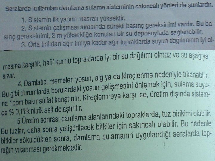 Tuz konsantrasyonu yüksek olan su kaynaklarının da bu yöntemle uygulanabilmesi mümkündür. Ancak serada yağışlarla yıkanma olmadığından belirli dönemlerde yıkama gereksinimi doğabilir. Bu durumda sera içine konulacak portatif bir yağmurlama sistemiyle yıkama yapılabilir.
