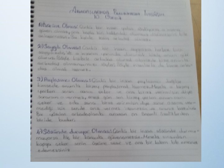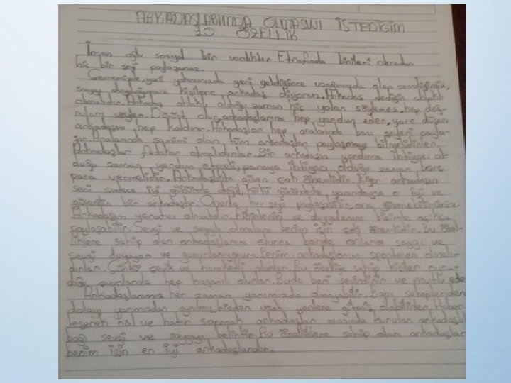 KONU BAŞLIKLARI • Arkadaşlarımda bulunmasını istediğim 10 özellik. • Tekrar tekrar ziyaret etmek istediğim yer ve nedenleri. • En sevdiğim şarkının sözleri. . • Gerçekleşecek 3 dileğim olsa… • En iyi olduğum 3 şey… • Kültürümüzün en sevdiğim 5 özelliği. . • En sevdiğim kitap ve nedenleri… • En iyi arkadaşım beni niçin seviyor? • Ne zaman kendimi yalnız hissetsem. . • Bana önemli bir sorulduğunda ____________ davranırım. • Cesaret ne demek? • Herkesin kulağına küpe olması gereken 3 öğüt: • En sevdiğim ders ___________ çünkü…. • Görünmez olsam _______________ yapardım çünkü ___________.