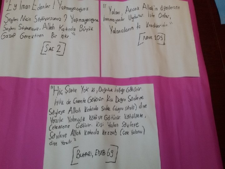 5)BEN HEP DOĞRUDAN YANAYIM • Doğruluk kavramının ne olduğu sınıf öğretmenleri tarafından öğretilmesi, hatırlatılması, zıt kavramının üzerinde durulur. • Öğretmen “doğruluk” kavramını ortaya atar. Öğrencilerden kendi tanımlarını alır. • Öğretmen ‘doğru’nun zıddı olan “yalancılık”, “gerçeğe aykırılık” gibi kavramları da gündeme getirmeye çalışır. • “Doğru olmak neleri gerektirir? ” sorusunu sorar. • Öğrenciye “Doğrudan yana olmak” ne demektir? diye sorulur. Öğrenciye doğrunun yanında yer alıp almak istemediği sorulur. • Doğrulukla ilgili ayet ve hadisler sınıf ve okul koridorlarına asılır.