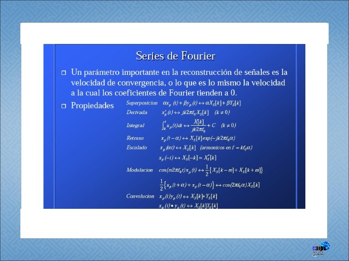 Series de Fourier § Las series de Fourier se aplican a señales periódicas. Fueros propuestas por el matemático francés Joseph Fourier en 1807. § Con el uso de las series de Fourier, “una señal periódica que satisface ciertas condiciones, puede ser expandida a una suma infinita de funciones seno y coseno. ”
