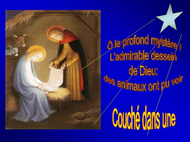 Le Verbe s’est fait chair, il a habité parmi nous. Et nous avons vu sa gloire qu’il tient de son Père comme Fils unique, plein de grâce et de vérité. L’Ange dit aux bergers : Je vous annonce une grande joie pour tout le peuple : dans la cité de David un Sauveur vous est né, Il est le Messie, le Seigneur !