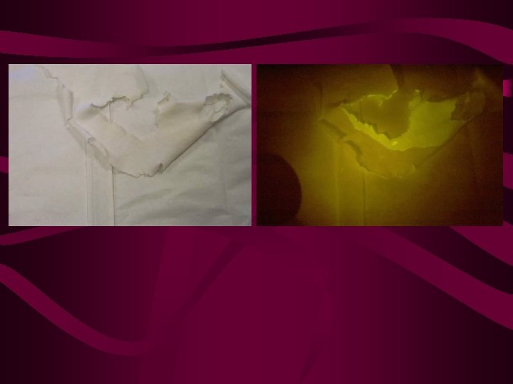 Forensic Characterization of Semen • Another test for semen is to use: 4 methylumbelliferyl phosphate (MUP). The garment in question can be pressed against a sizable piece of filter paper that has been sprayed with MUP, a UV light is then used, and any places that fluoresce under the UV light, will give a positive test for seminal fluid.