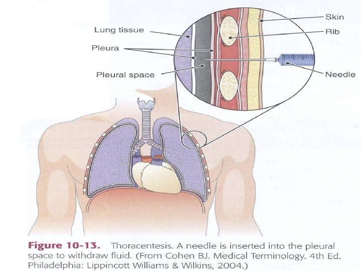 Thoracentesis It is the procedure in which the fluid is obtained by a needle and syringe