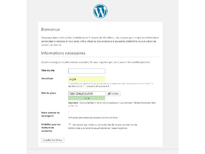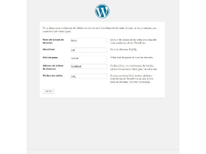 Pour chaque poste Wampserver Installer Wampserver, une base de donnée (blog), utilisateur et mot de passe Où (root) sans mot de passe ni utilisateur