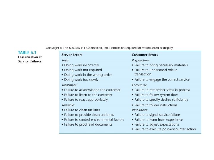 • Gap #3: conformance gap • Service standard • Service delivery – Lack of team work – Poor employee selection – Inadequate training – Inappropriate job design