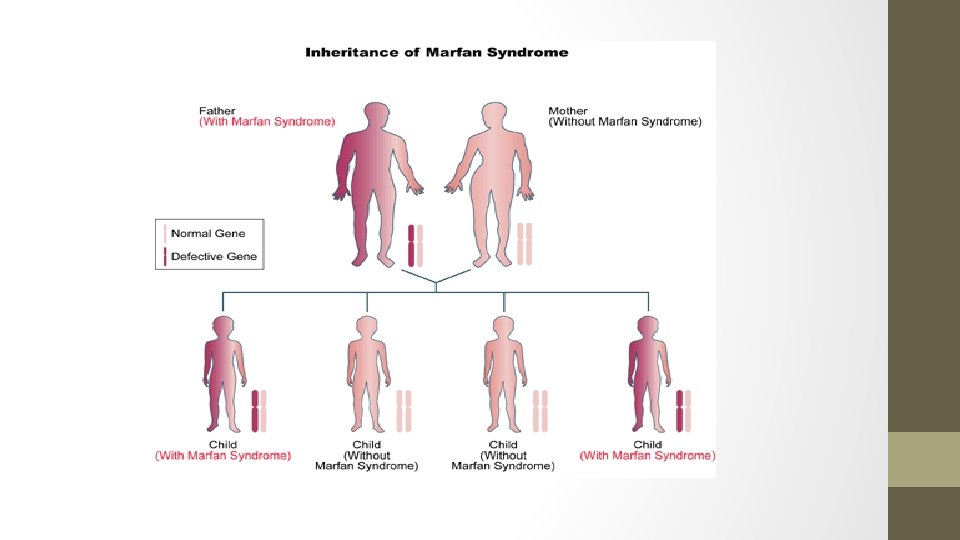 Historia. • En 1971, se descubrió que los beta bloqueadores reducían el riesgo de disección aórtica, principal causa de mortalidad en estos pacientes, por lo que se introdujeron como terapia profiláctica. • En 1991, Dietz et al. encontraron una correlación entre el síndrome y mutaciones del gen FBN 1, que codifica para la proteína fibrilina-1 de la matriz extracelular. • Otro gen, que codifica para el receptor beta 2, TGFb. R 2, fue identificado en 2004 por Mizuguchi et al. Este gen origina los fenotipos clásicos relacionados a MFS, pero sin manifestación ocular significativa. Frydman M. The Marfan Syndrome. MAJ 2008; 10: 175– 178. Lebreiro A y cols. Si ndrome de Marfan: manifestac o es cli nicas, fisiopatologia e novas perspectivas da terape utica farmacolo gica. Rev Port Cardiol 2010; 29 (06): 1021 -1036
