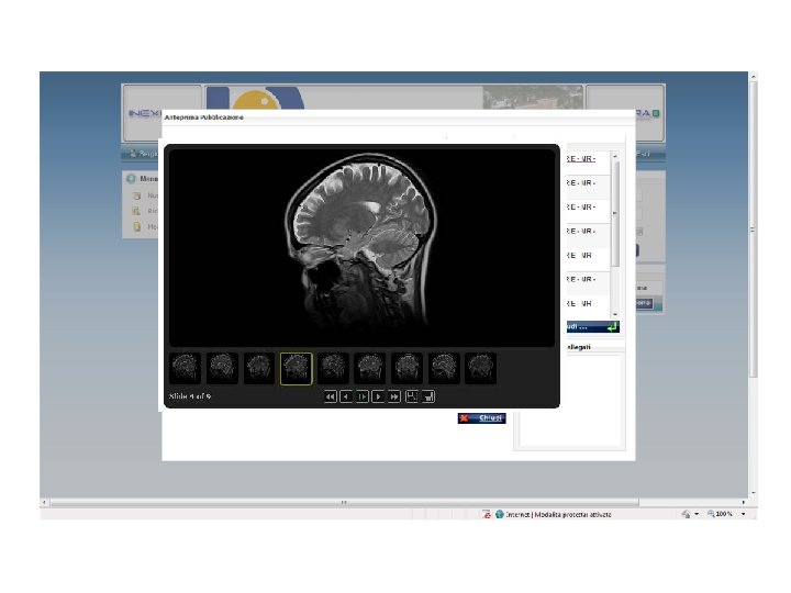 Dossier Clinico Radiologico • Il Dossier è la raccolta dei dati clinico/sanitari derivanti dall’archiviazione storico/legale degli esami diagnostici prodotti dalla struttura ospedaliera. • Esso si arricchisce, giorno dopo giorno, di tutte le prestazioni che i vari pazienti eseguiranno presso l’Azienda Sanitaria e consentirà, agli utenti abilitati, di visualizzare l’intera storia clinica del paziente tramite l’interfaccia web del servizio.
