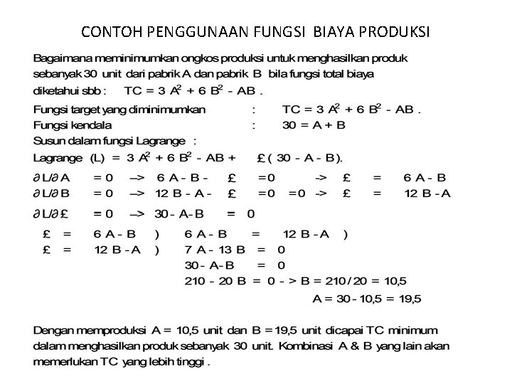 FUNGSI BIAYA PRODUKSI DITURUNKAN DARI FUNGSI PRODUKSINYA PENDEKATAN MATEMATIS