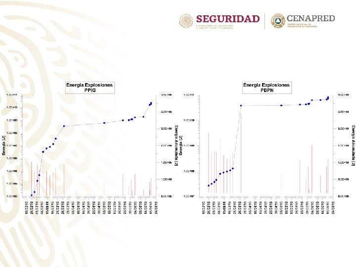 2. 9 x 104 J 2. 35 x 104 J Energía de los dos eventos más grandes registrados el 18 de mayo por la noche (23: 02 y 23: 15) Estación PPIG (ubicada en Tlamacas) Estos eventos no tuvieron señal de infrasonido (PSM 1)