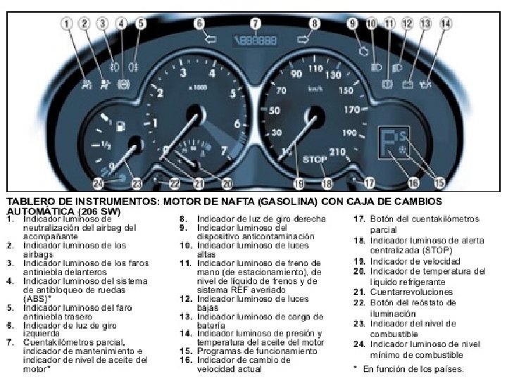 SISTEMA ELECTRICO 6. INSTRUMENTOS DE CONTROL: En todos los automóviles resulta necesario la presencia de ciertos instrumentos o señales de control en el tablero.