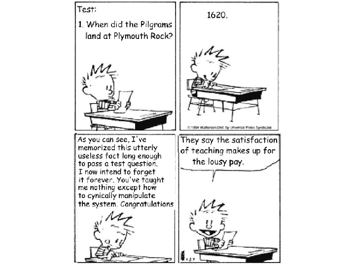 Assessment? Think about it! Small group activity: • What is the difference between teaching and telling? • What is the difference between assessing and grading? • What is the difference between teaching and learning?