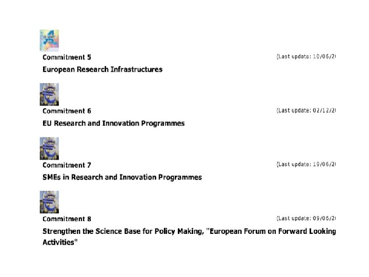 European initiatives (5) Governance of the European Research Area • The linkages between Research and Innovation Policies: FP 7 and CIP • ‘Regions of Knowledge’ Programme • ERA: coordination and variable geometry (former art. 169; now art. 185 of the Treaty of Lisbon) • OMC experiences: the ‘objective 3%’ exercise may provide ideas for ERA OMC initiatives
