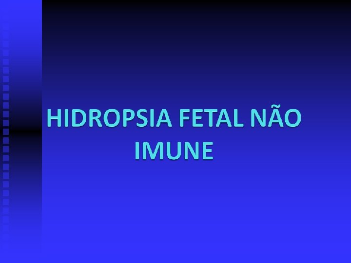 DEFINIÇÃO: n Excesso de líquido em duas ou mais áreas corporais (tórax, abdômen ou a pele) n Ocorre em : 1/1500 a 4000 partos CLASSIFICAÇÃO: • HIDROPSIA FETAL IMUNE (HFI) • HIDROPSIA FETAL NÃO IMUNE( HFNI)
