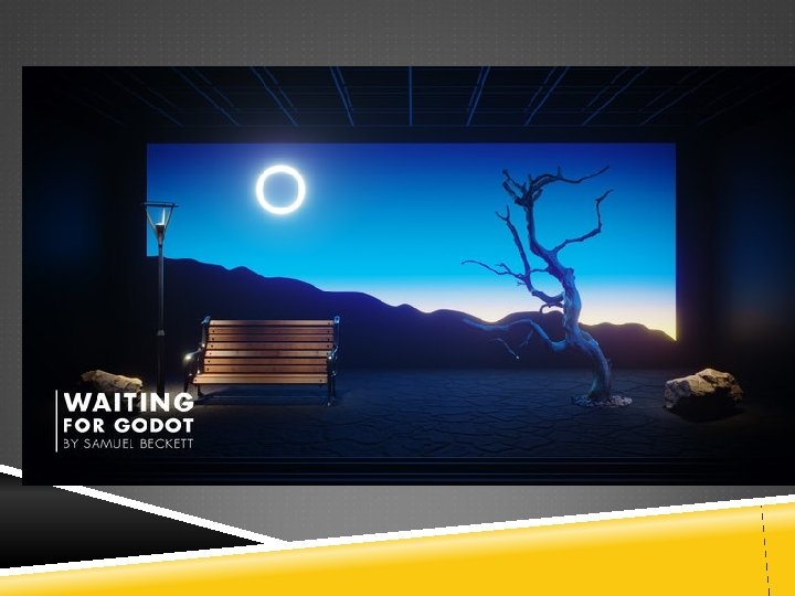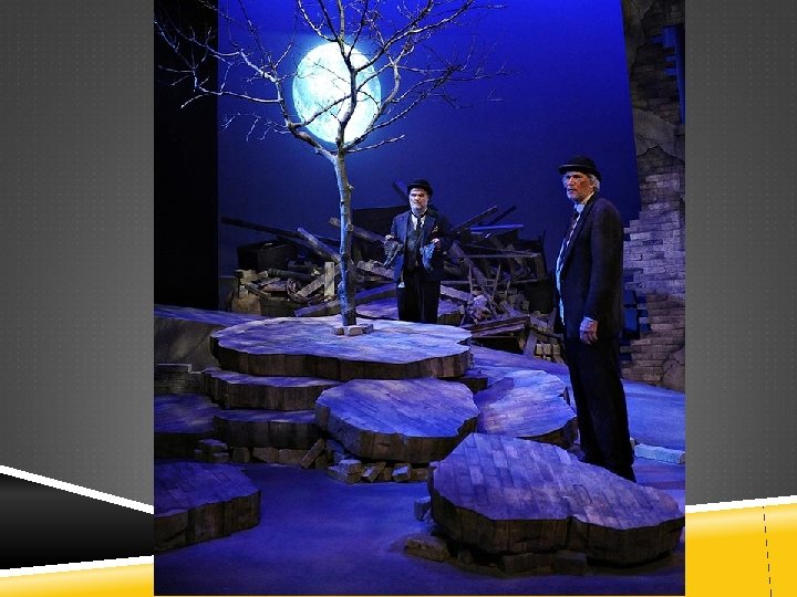 YOUR TASK Design a set using this introduction from the play Waiting For Godot. A country road. A tree. Evening. Estragon, sitting on a low mound, is trying to take off his boot. He pulls at it with both hands, panting.