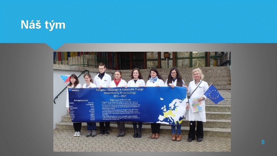 Erasmus+ 2015 -2017 European Challenges in Sustainable Energy Production by Biotechnology Evropský projekt, podpora od EU Zaměřen na vzdělávání Hlavní téma: PRODUKCE ENERGIE POMOCÍ BIOTECHNOLOGIÍ Školení nových biotechnologických nadšenců (možnost zapojení se i jako mentor) Mezinárodní spolupráce Účast 9 evropských škol 2