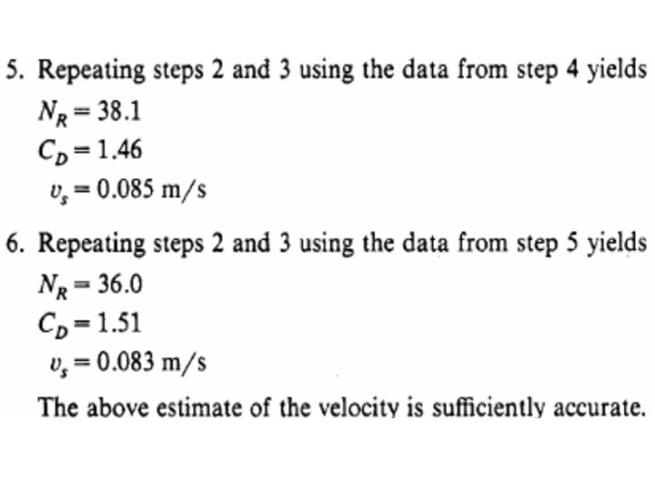 Settling Model Vs = settling velocity of the particle Vl = horizontal velocity of liquid flow