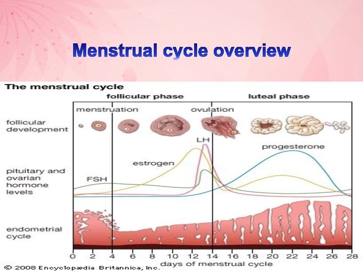 Menstruation (From day 1 to 5) Ø Follicular phase (From day 1 to 13) Ø Ovulation phase (Day 14) Ø Luteal phase (From day 15 to 28)