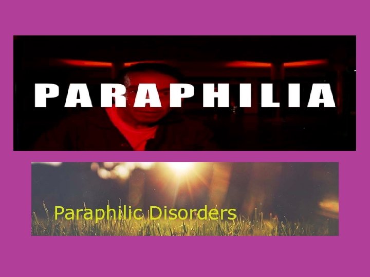 Definitions • Paraphilias are frequent, intense, sexually arousing fantasies or behaviors that involve inanimate objects, children or nonconsenting adults, or suffering or humiliation of oneself or the partner. • Paraphilic disorders are paraphilias that cause distress or cause problems functioning in the person with the paraphilia or that harm or may harm another person. https: //www. ncbi. nlm. nih. gov/pmc/articles/PMC 3769077/