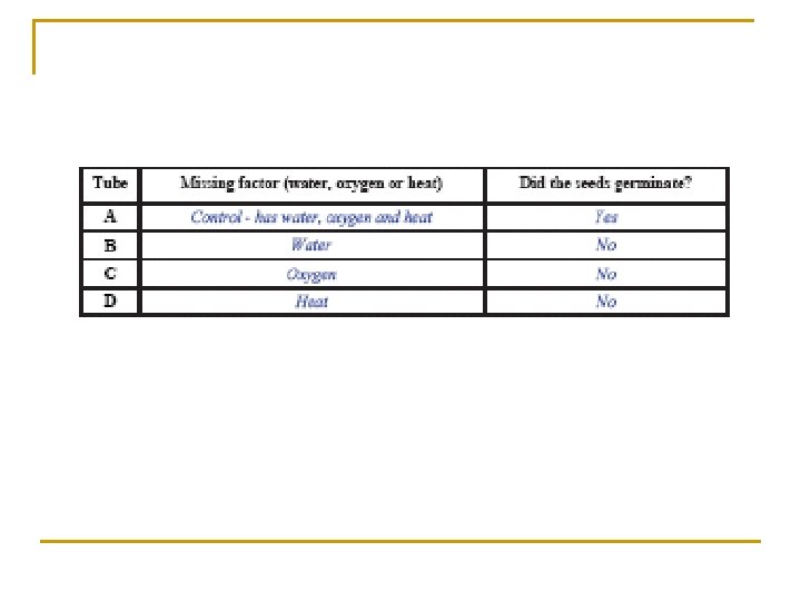 1. To. Investigatethe. Conditions. N eededfor. Germination(16. 1) Germination – Factors necessary? n n n Water Oxygen Suitable temperature