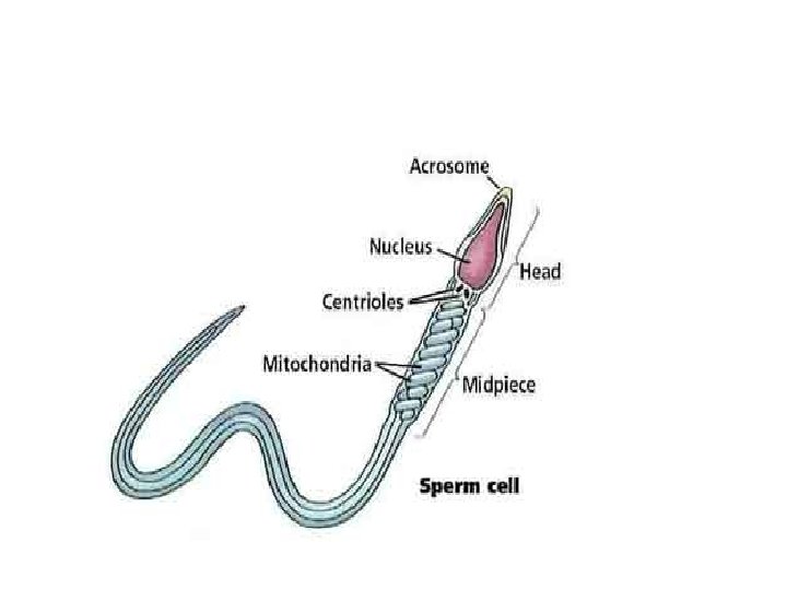 • Male Reproductive System Structures • 1. testes -- produces sperm and the hormone testosterone • 2. scrotum -- pouch enclosing the testes keeping the sperm at an optimum temperature for development • Epididymis: A coiled tube • 3. vas deferens -- tube carrying sperm away from the testes • 4. prostate gland -- the largest of several glands which add lubricating and other fluids to the sperm • -- this combination of sperm and fluids is called semen • 5. urethra -- tube through the penis carrying sperm to the outside of the body • 6. penis -- adaptation for internal fertilization of the female