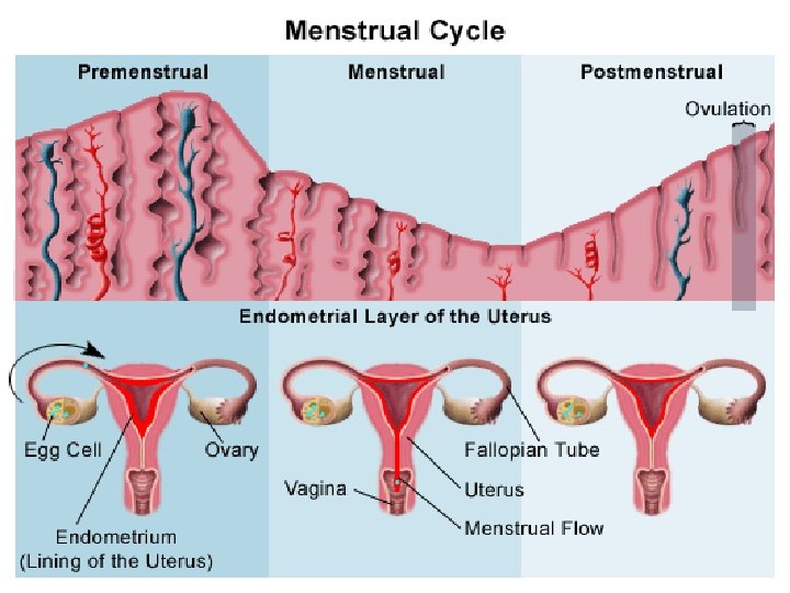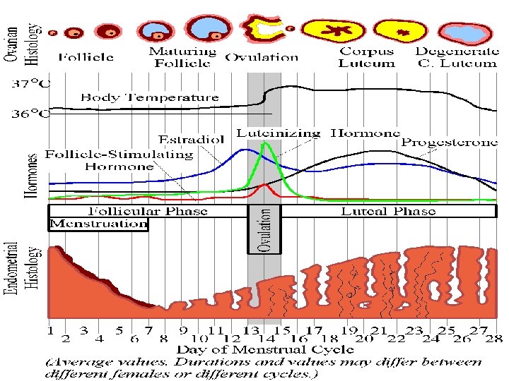 4 stages of menstrual cycle • Follicle stage (1 -14 days) • Ovulation (Day 15) • Luteal stage (10 -12 days) • Menstruation (last 4 -5 days)