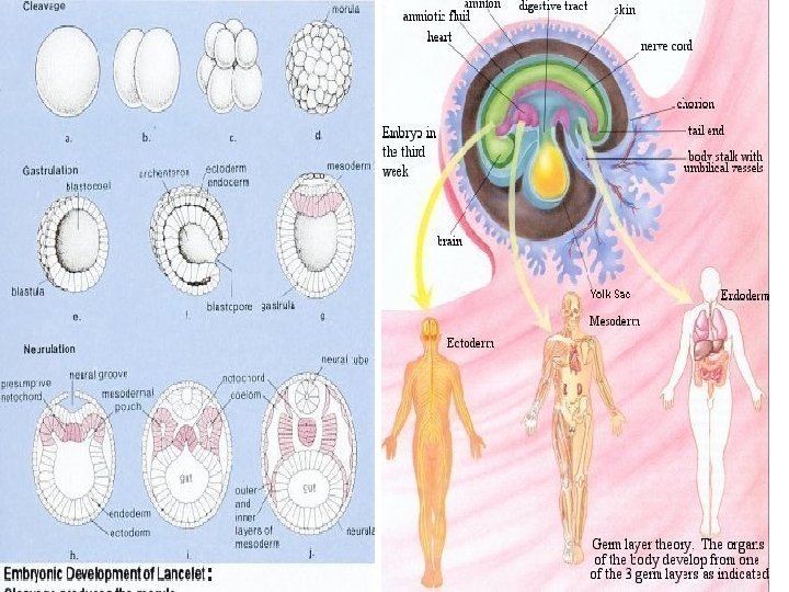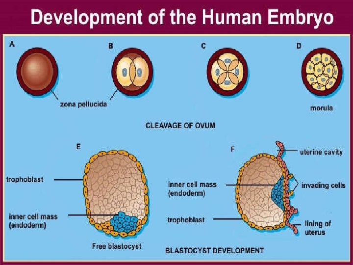 • The first few divisions of the zygote are called cleavage. • Cleavage is mitotic divisions • Different stages of development of zygote after cleavage: • 1) Hollow ball of cells…blastula • 2) Invagination of blastula makes gastrula…process is called gastrulation